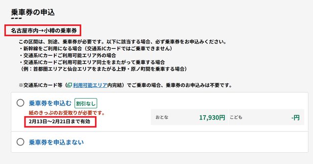 可以預訂目標濱松、函館、札幌途中下車,在終點站小樽由札口將乘車券回收
