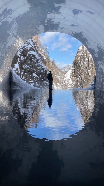 清津峽停車場下車走到隧道口大約5-10分鐘,進入隧道要再支付「入坑料」1000日幣。隧道沿途會有一些觀景台可以往外看峽谷,走到底的話會是最經典,有一個平台可以拍倒影的地方,建議穿著防水鞋,就可以輕鬆走下去拍美照囉~