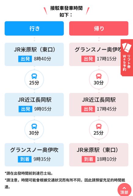 雪場接駁車17:15回米原站 18:10