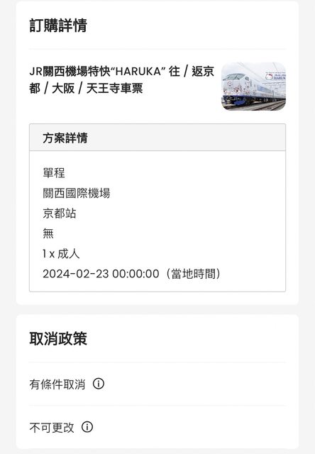 標題[讓售] haruka 機場至京都單程&周遊卡&地鐵巴士