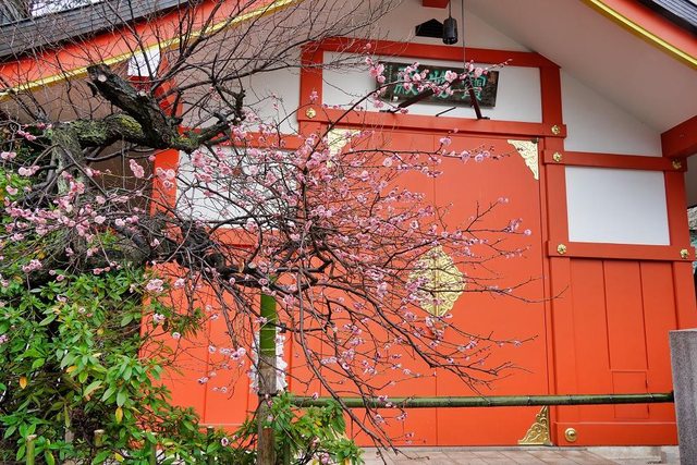 寶物殿前面的粉紅梅花