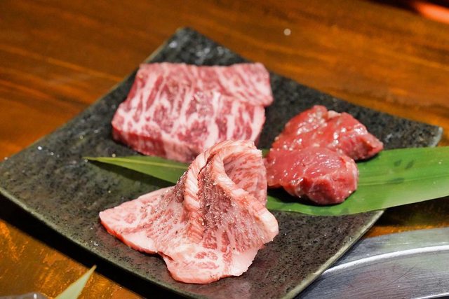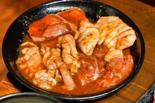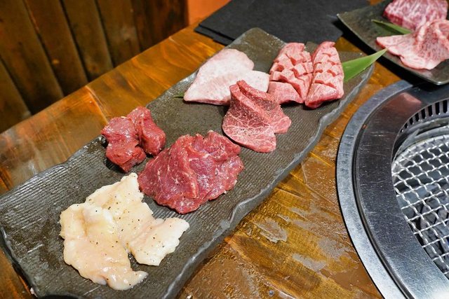 (飲酒過量 有礙健康) 我們點了2種牛肉拼盤和1盤豬內臟 好像是稀有部位的 但我已經忘記了XD 店員送上來的時候會說明哪種肉要烤幾分熟和沾哪種醬 但誰記的起來XD