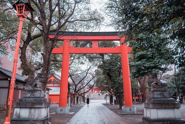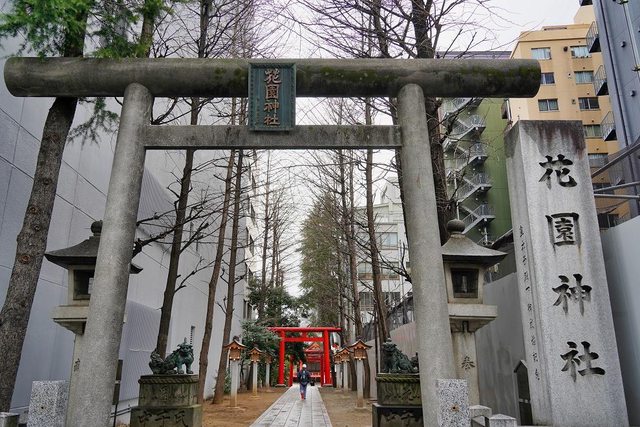 邊走邊逛便利商店 走了27分鐘從哥吉拉飯店前面DONKI走到花園神社 靖國通這一側的鳥居