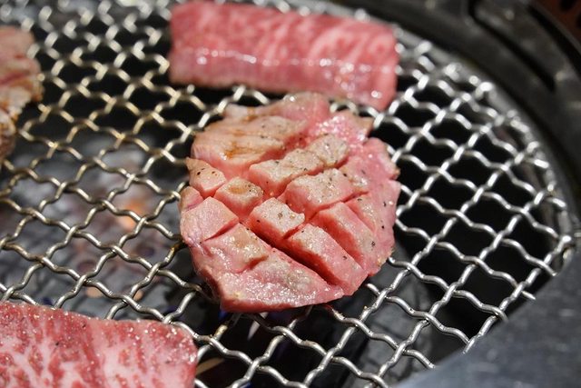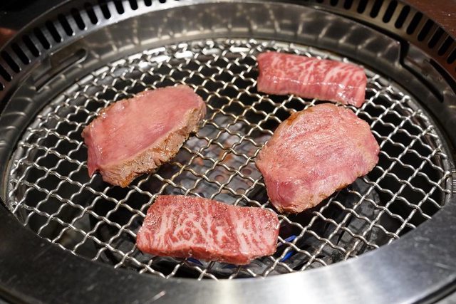 結果店員一直觀察我們… 大概想說我們把那麼好的肉烤成這樣 後來乾脆來幫我們烤了1片示範給我們看 但吃起來對我來說有點太生… 牛肉來說我還是喜歡熟一點的XD 我們自己烤的也不差啊 看起來還是很好吃啊XD