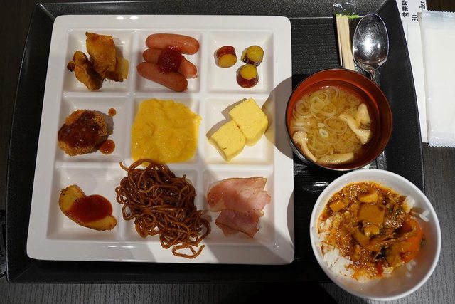 早上先吃飯店的早餐 在1樓的SAKURA餐廳 1個人是2,200円 6點30分開始營業 不過還是要早一點去 我們是大約6點40分 那時候還沒多少人 但等我們7點半吃完要離開的時候已經很多人了