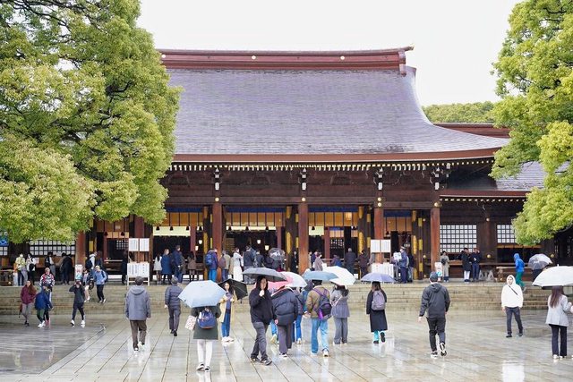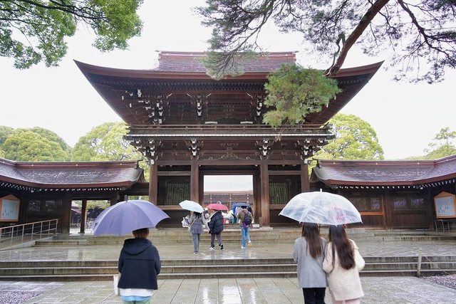 第2天行程都在市區比較輕鬆 早上先去花園神社、新宿駅取預訂的JR東京廣域周遊券和車票、中午到SHIBUYA SKY、下 午去明治神宮、晚餐吃牛戀新宿店 一早看外面陰雨綿綿