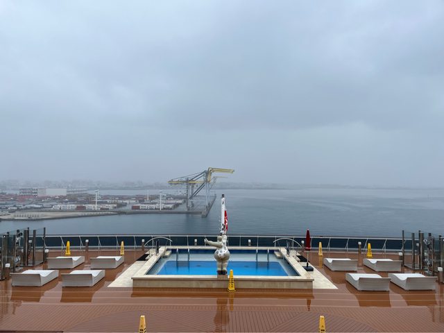 也算運氣不錯,我們抵達郵輪後,天氣開始飄點小雨;但也因為如此,原本我想去體驗的