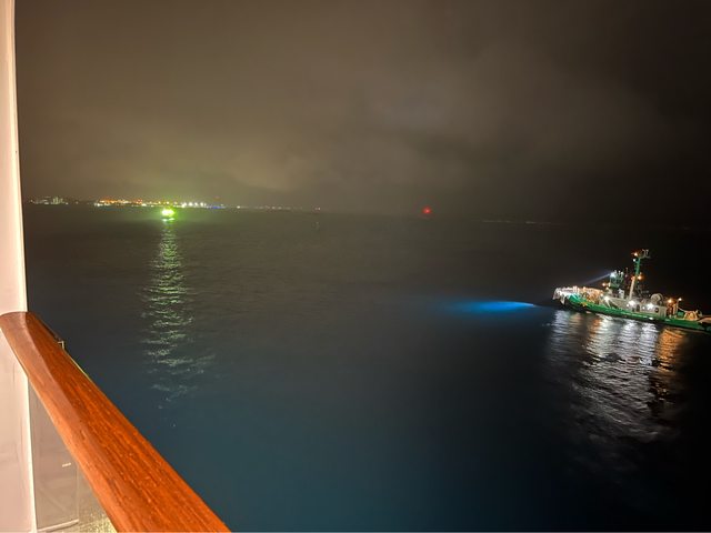 今天晚上8點啟程,在引水人的引領下、慢慢離開那霸港,要再回石垣島了(其他有的航