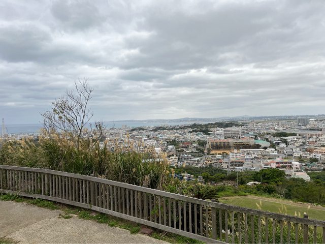 這時發現山壁邊有城牆,原來是浦添城遺跡,上去後可以遠眺市區及海邊。今天還有學生