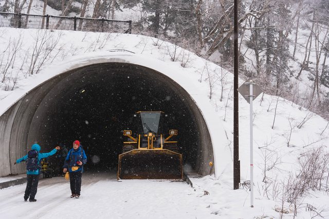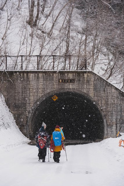 出了隧道口迎來一片雪景,此次健行的前幾天遇到日本大回暖,是何等幸運可以在天氣再
