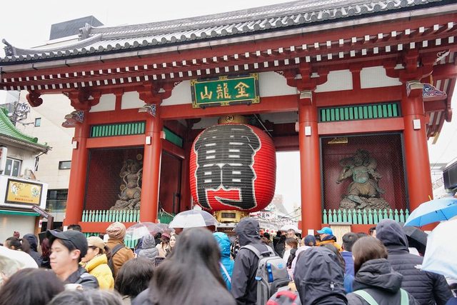 淺草寺自628年開山至今 仲見世通也是日本最古老的商店街之一 還不到10點也是很多人 主要也是因為很多人撐傘所以顯得更擁擠 店家大約開一半