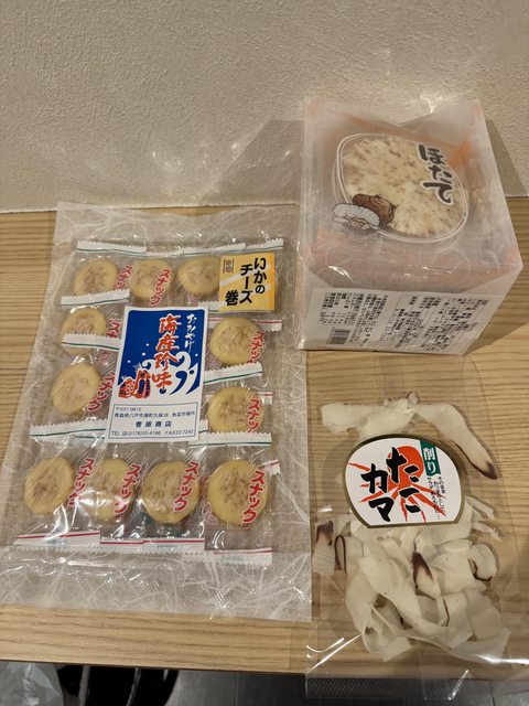 但裡面有一家賣海產加工食品,叫做菅原商店,老闆娘(大概四五十歲)英文還不錯,