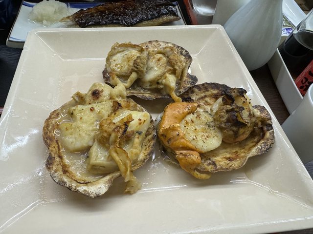 這家點了三個東西,排名順序是烤帆立貝、帆立貝味噌燒定食、烤魚定食,