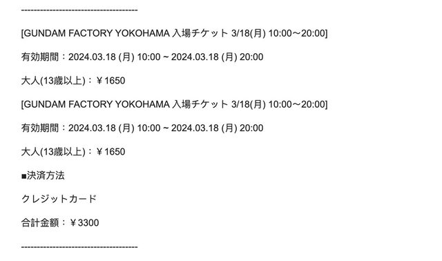 標題[讓售] 橫濱鋼彈工廠 3/18入場卷 兩張