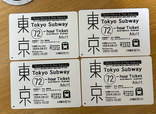 東京地鐵三日券 實體票 可直接使用,共四張