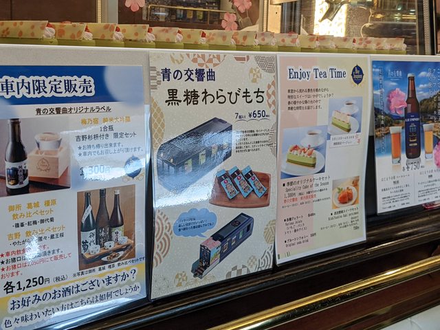 上車出發後,大家都趕往第二節車廂,是專門販賣商品和餐食的共用車廂,我去的時候座位區已經滿了! 我買了一盒青之交響曲外觀的果凍,那個盒子很可愛,上面還有很多奈良特產。