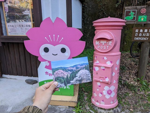 走下山回到吉野車站,在外面寫明信片,蓋上車站印章再寄回台灣~完成這次的吉野山賞櫻一日遊!