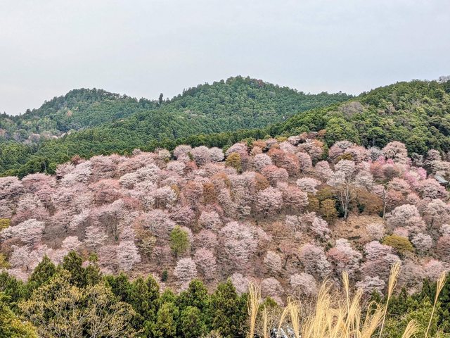 爬樓梯上吉水神社,到一目千本就會看到滿山盛開的千本櫻,每個走上來的人都發出讚嘆的聲音~真的會超感動!很幸運這個時間來櫻花大盛開,從下千本到奧千本的櫻花幾乎都是滿開!