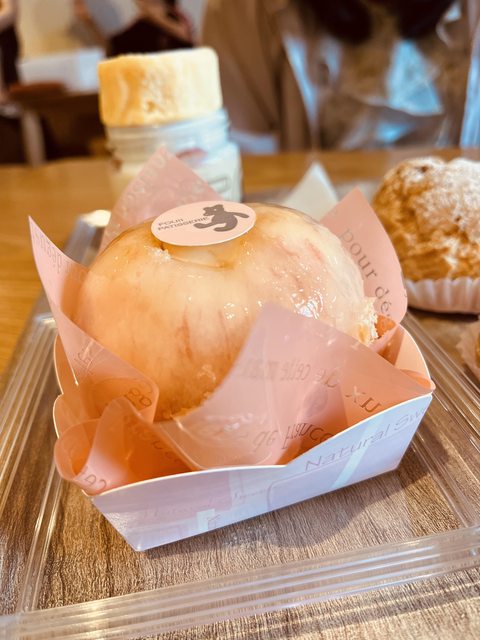 搭配起來奶香濃郁,平衡了布丁的甜味;泡芙,內餡滿滿,甜度恰到好處;桃子蛋糕使用
