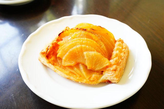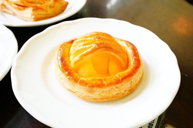 品的蘋果派,使用微酸的紅玉蘋果做內餡,未加肉桂,可以吃到蘋果酸香多汁;第二個是