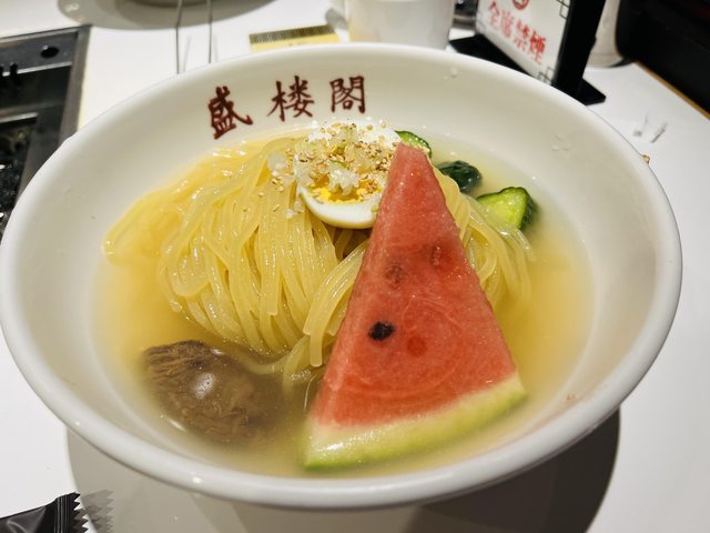 岡已經吃過ぴょんぴょん舎,這次就嘗試看看另一家盛樓閣。點完冷麵後配上兩盤牛橫膈