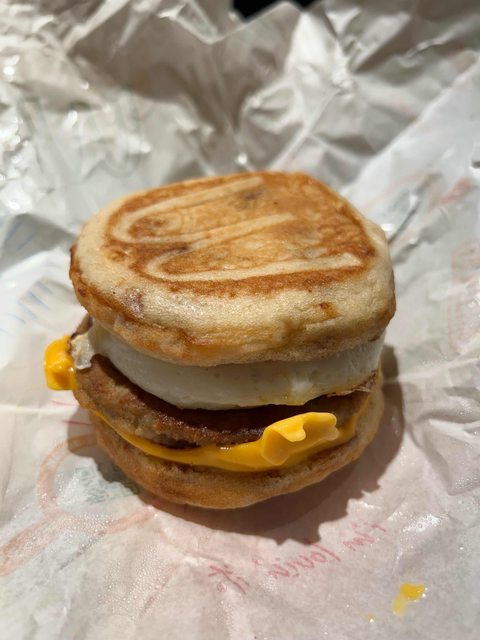→ gmoz : 最好吃的是楓糖鬆餅漢堡 真的很讚 要選沒蛋的更好吃 10/19 19:21