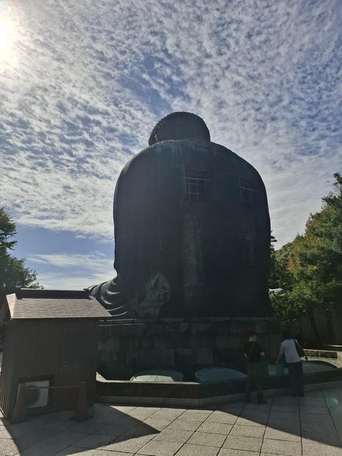 高德院拜觀料¥300,因為10年前有進去過大佛裡面,這次又排太多人,就不進去了,繞到側面寫御朱印後,來背面等的時候發現雲好漂亮,於是拍了一張大佛背影。