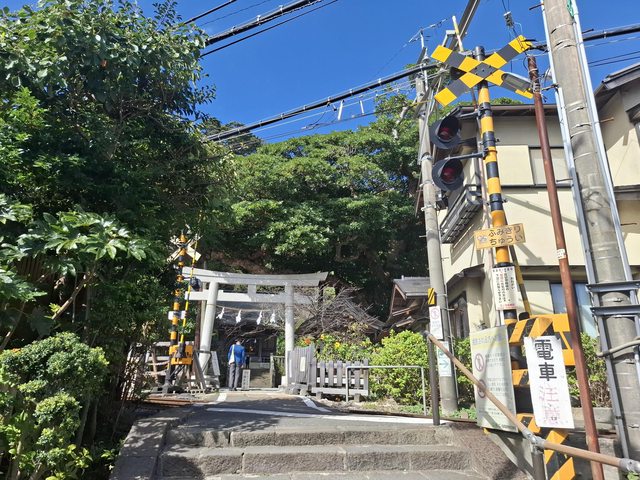 看地圖就長谷寺隔壁,但其實高低差所以要繞一小圈,神社區域內不能拍照就沒拍了,只有拍一張鐵軌+神社外觀,另外,御靈神社御朱印¥700,不過不用拜觀料,加起來也還好。