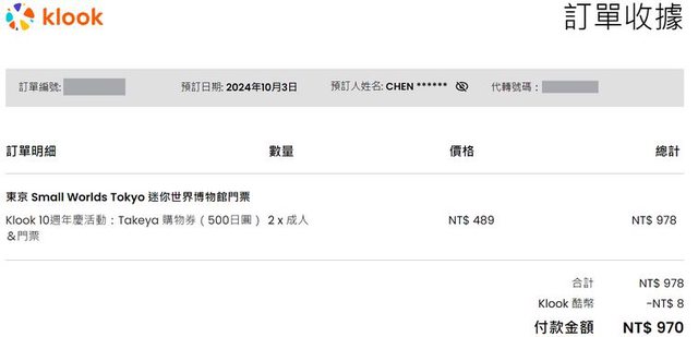 3. 此物品由您買入的價格(讓售只能小於或等於此金額): 2張共 970台幣
