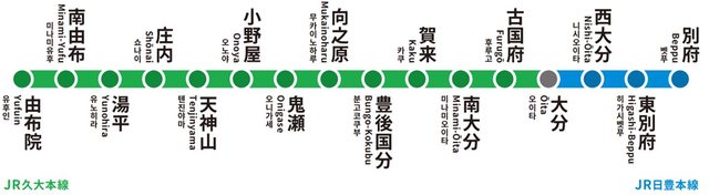 JR九州別府~由布院車站間的16座車站