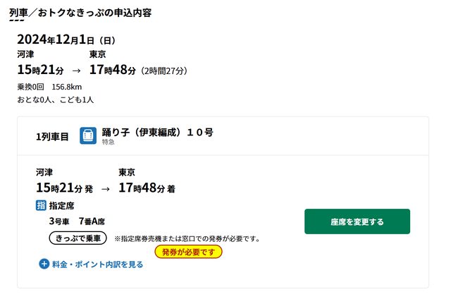 特急券,PASS改發二張指定券