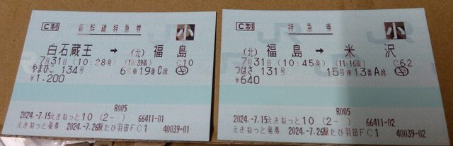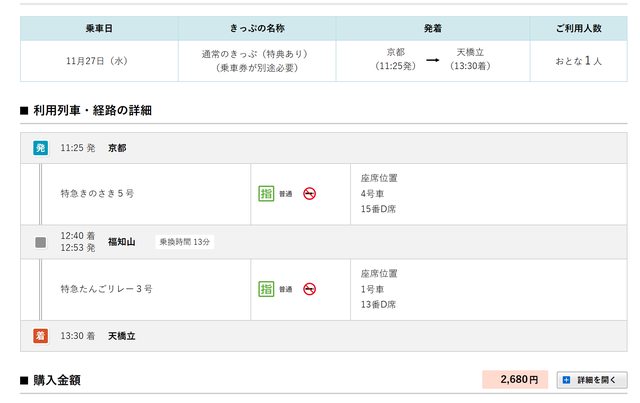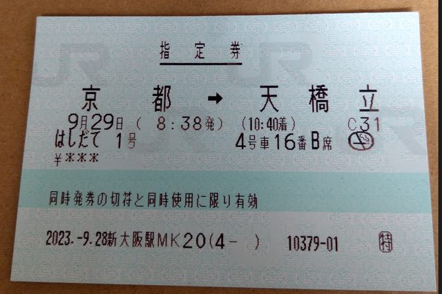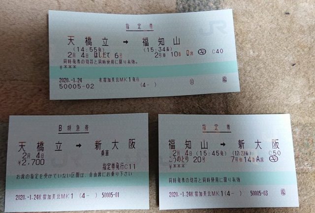 會發二張指定券:新大阪---福知山、福知山---天橋立