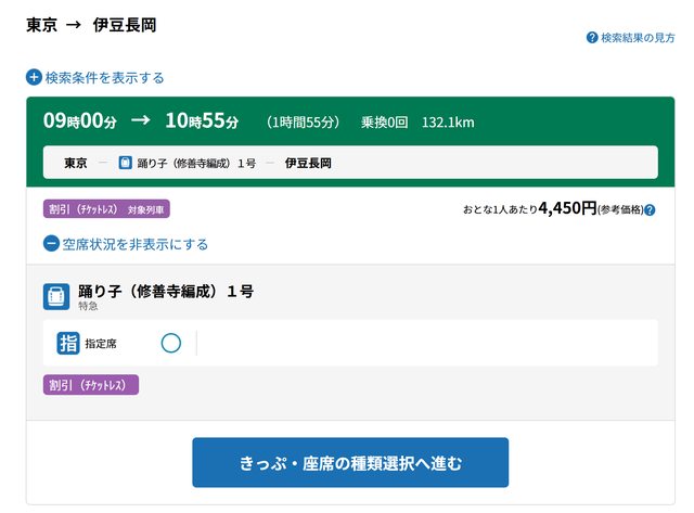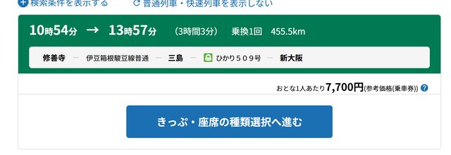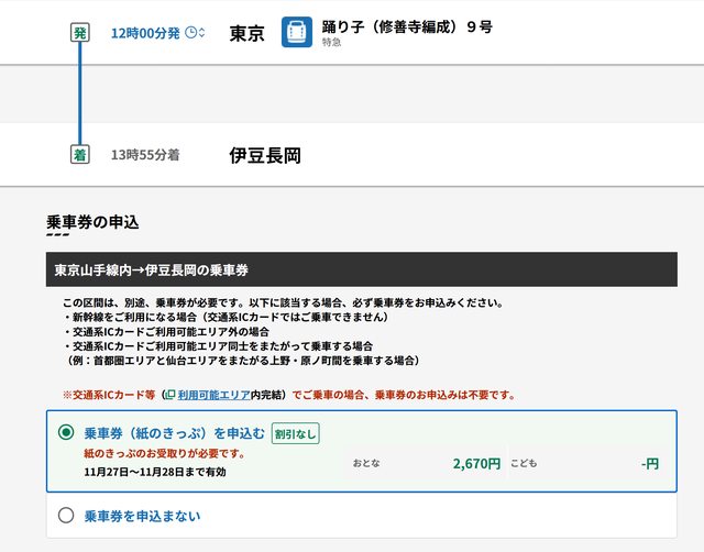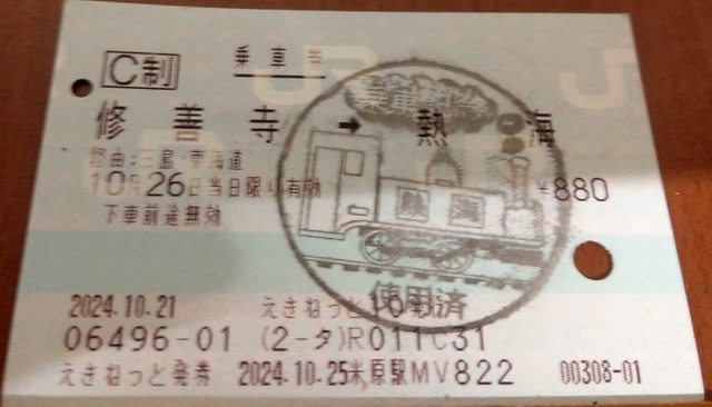 乘車券:可開立「修善寺---熱海」或「修善寺---新大阪」,