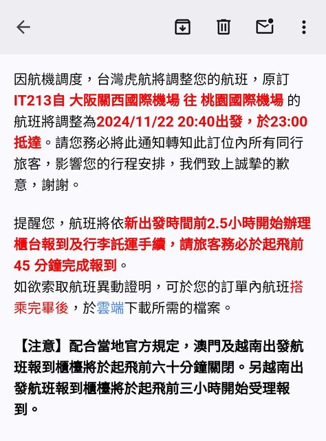 → aij : 今天的IT212,原定14:40的班機,昨天改到16:35,然 11/22 16:43