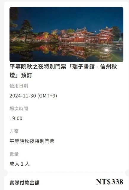 標題[讓售] 11/30平等院夜間賞楓門票