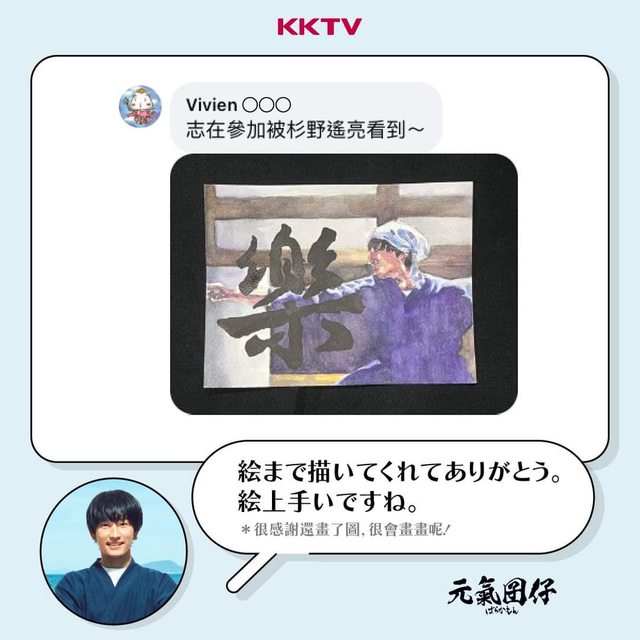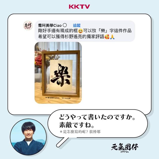 標題Re: [情報] KKTV活動 - 讓杉野遙亮看見你的書法作品