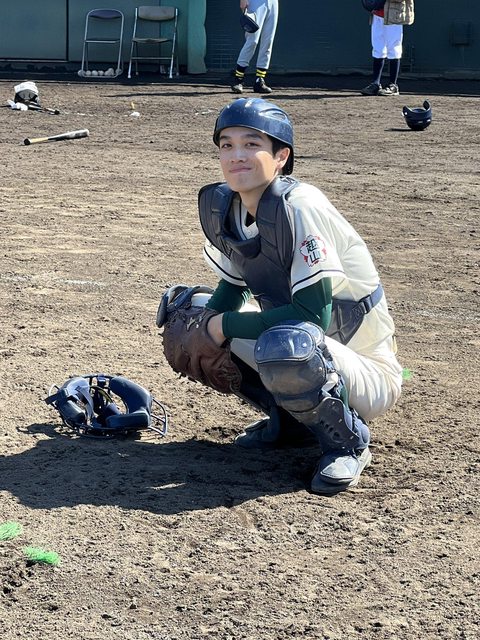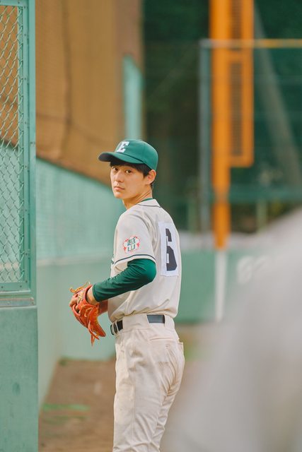 雖然因為是飾演三年級學長,後期他的戲份比較少,但拍攝時需要左打者打出的球時