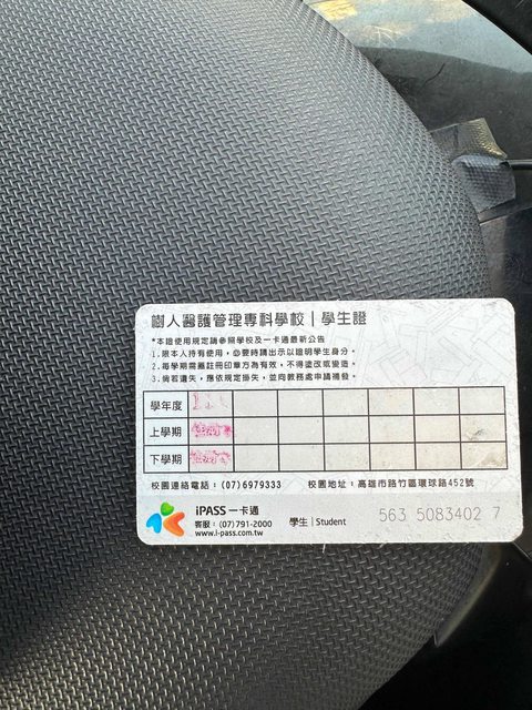 標題[拾獲] 楠梓區拾獲學生證一張