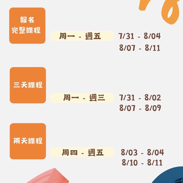 A 7/31(ㄧ)~ 8/04(五)