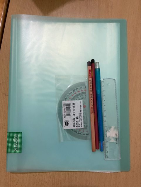 4、8成新資料夾、二手藍色筆、鉛筆、尺