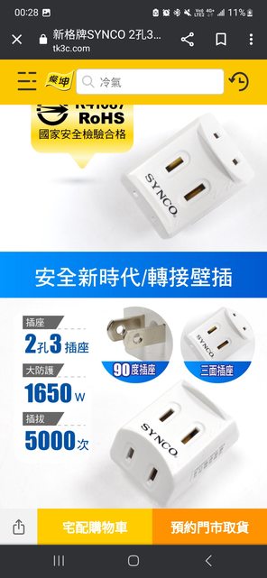 物品名稱:家樂福1.8m三孔延長線(如圖)