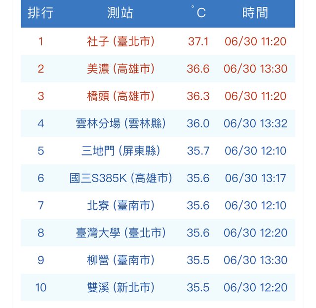 昨日台北盆地豪雨,今日不太可能再破36度,亮橙燈。反而是高雄沒豪雨,昨日有36度,該