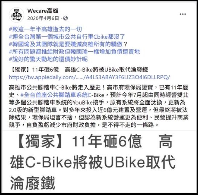 當初高雄引進youbike,換掉Cbike,