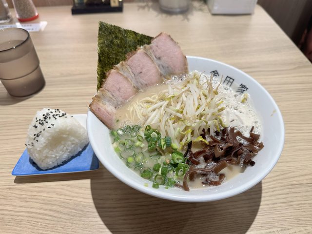 我點了豆芽菜拉麵跟飯糰