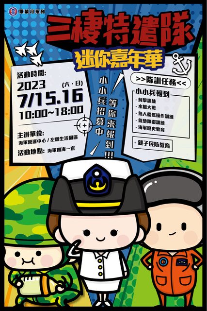 專為親子規劃的軍事體驗遊戲、市集攤位、眷村海陸滿漢宴辦桌活動