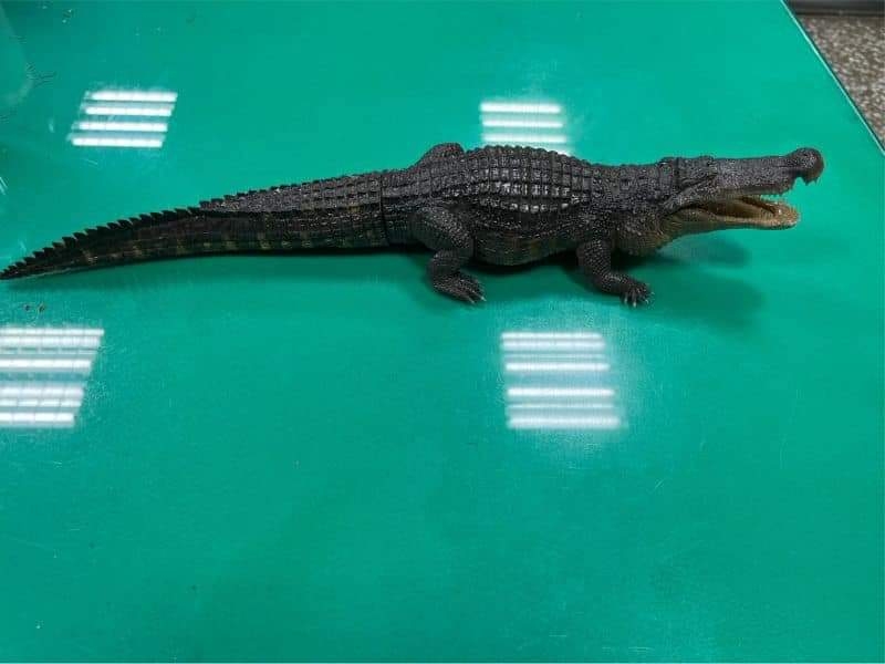 子、幼年鱷魚尺寸」,研判可能是玩具模型。