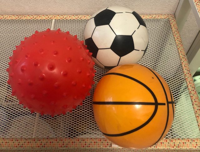 備注:孩子小時候跑草地時的玩具球,當初在駁二草原區旁攤販買的三件一組式的彈力球