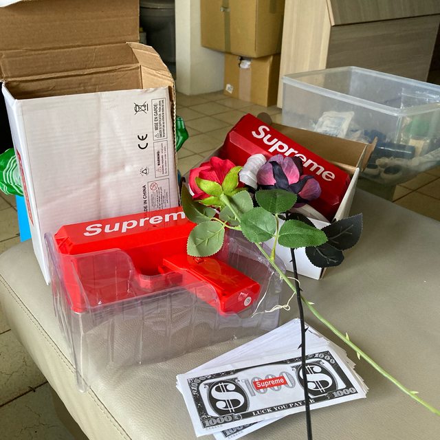 1. 道具鈔票鎗組(附道具鈔票+玫瑰花各1,道具鎗一個好像有東西卡住+一個可以正常用