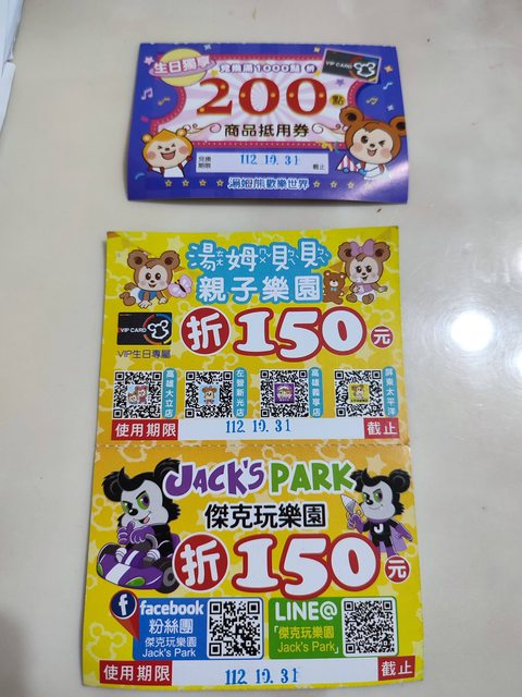 1.一張遊樂園折價卷,可以帶小朋友去玩,不無小補,有效期限10/31
