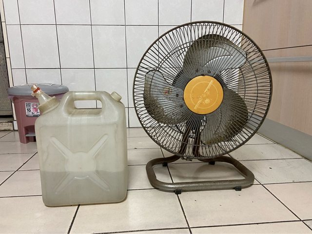 2.電風扇:功能均正常,但長時間放在廚房所以卡了很多油污,需要清理一下。(左邊的